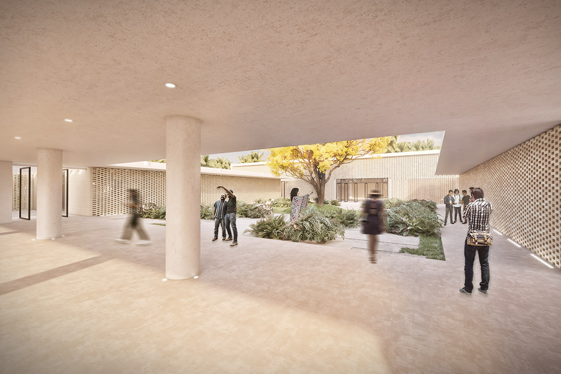 En el proyecto se emplean estrategias de diseño arquitectónico como: uso de especies vegetales endémicas, empleo de pavimentos que permiten la infiltración de agua pluvial al suelo, sistemas constructivos de bajo costo y mantenimiento. Con ello, se favorece la integración al paisaje y se reduce el impacto ambiental a favor de la política pública nacional que previene los efectos del cambio climático.