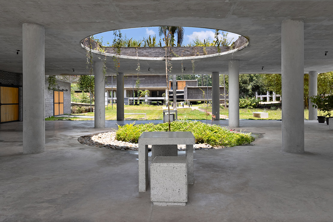 En el primero de los dos módulos, ubicado al oeste, se encuentra una oficina de administración, la recepción, baños, bodegas, una tienda de venta de productos locales y la sala de exposiciones, desde la cual inicia el recorrido por los senderos del café. El segundo módulo está completamente abierto por los 4 costados, con excepción del área de cocina, que se encuentra dentro del primer módulo; se prevé que, en esta zona cubierta, los visitantes degusten los productos locales que se ofrecerán a la venta, y encuentren un sitio de descanso a resguardo de la lluvia o el sol.