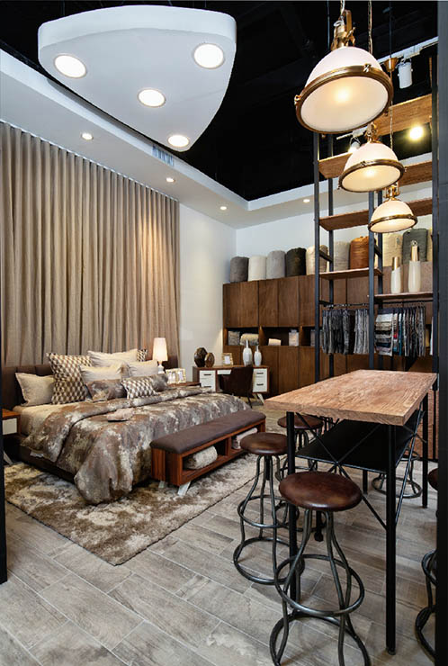 Iló Mérida, a lo largo de toda la tienda se pueden apreciar varios ambientes en diferentes sets que se generaron para hacer sentir una sensación de comodidad a través de la iluminación y materiales contemporáneos, en el cual un muro de fachaleta genera un contraste original para brindar a la atmósfera un remate visual con elegancia. Cada detalle de la tienda está planificado para crear una experiencia comercial para que los clientes se puedan sentir identificados con la marca y que cada espacio está pensado correctamente para que cada punto pueda transmitir un ambiente elegante y natural.
