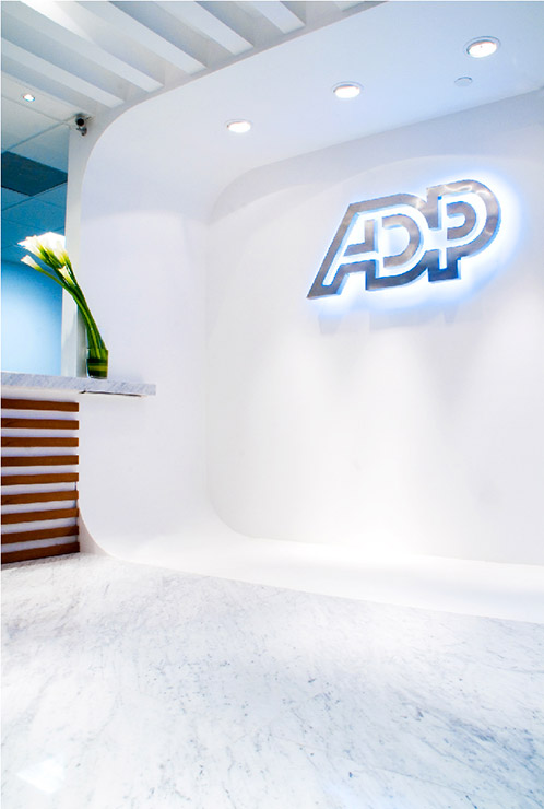 El diseño para el recibidor de las oficinas ADP, establece un nuevo punto de referencia para la innovación, la flexibilidad y la integración de la tecnología. Los visitantes y el personal son recibidos por un espacio de recepción espacioso y lleno de luz.