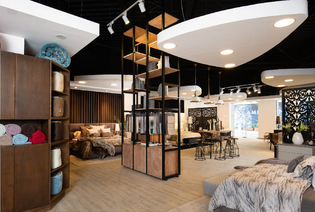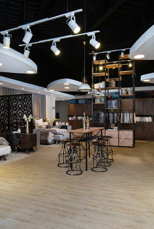 Iló Metepec es un espacio amplio cuyo acabado permite ver los diferentes sets que se generaron alrededor de toda la tienda haciendo una experiencia comercial atractiva. Se le dio un énfasis muy importante a los plafones, que se encuentran en la iluminación de cada set, logrando transmitir una sensación de una mayor altura e iluminando cada uno de los sets exhibidos.