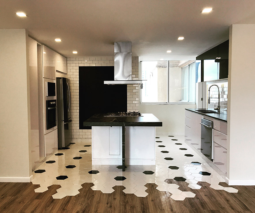El departamento Londres 224 quisimos conectar cada espacio, logrando dar una sensación de amplitud en donde creamos un lugar donde estuviera presente la elegancia y en el que cada ambiente convierta la cotidianidad en una experiencia memorable, en donde derribamos una pared para poder hacer una cocina abierta pensado lograr espacios diseñados para la idea de convivencia como uno de los componentes que definen el lugar , donde la mezcla de los materiales y composición de los mismos permite la unión de cada espacio.